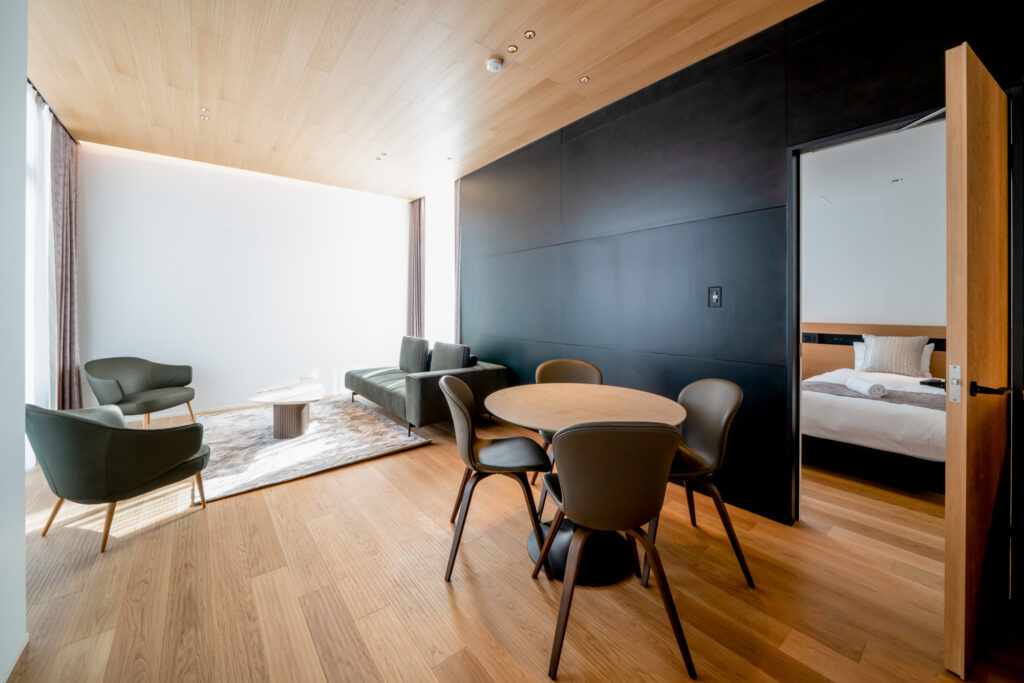 “Inside, concrete surfaces imprinted with cedar grain are paired with accents of charred cedar, creating a calm and substantial atmosphere that highlights the beauty of natural materials,” said Seigo Sasaki, President and CEO of Resort Japan K.K. “We hope guests will enjoy moments of spacious comfort in a setting where functionality and design are seamlessly integrated.”