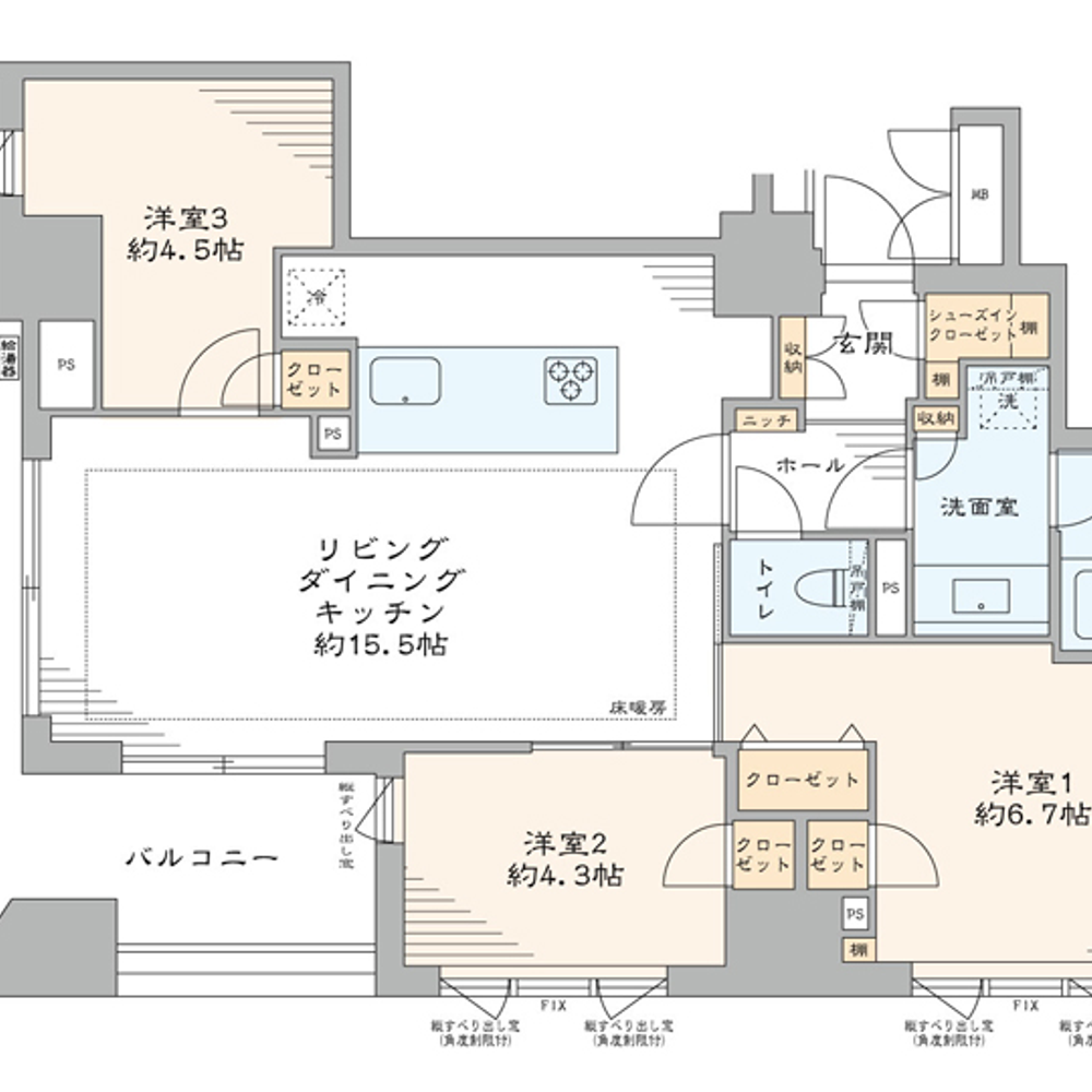 ・66.55㎡ 3LDK layout suitable for families