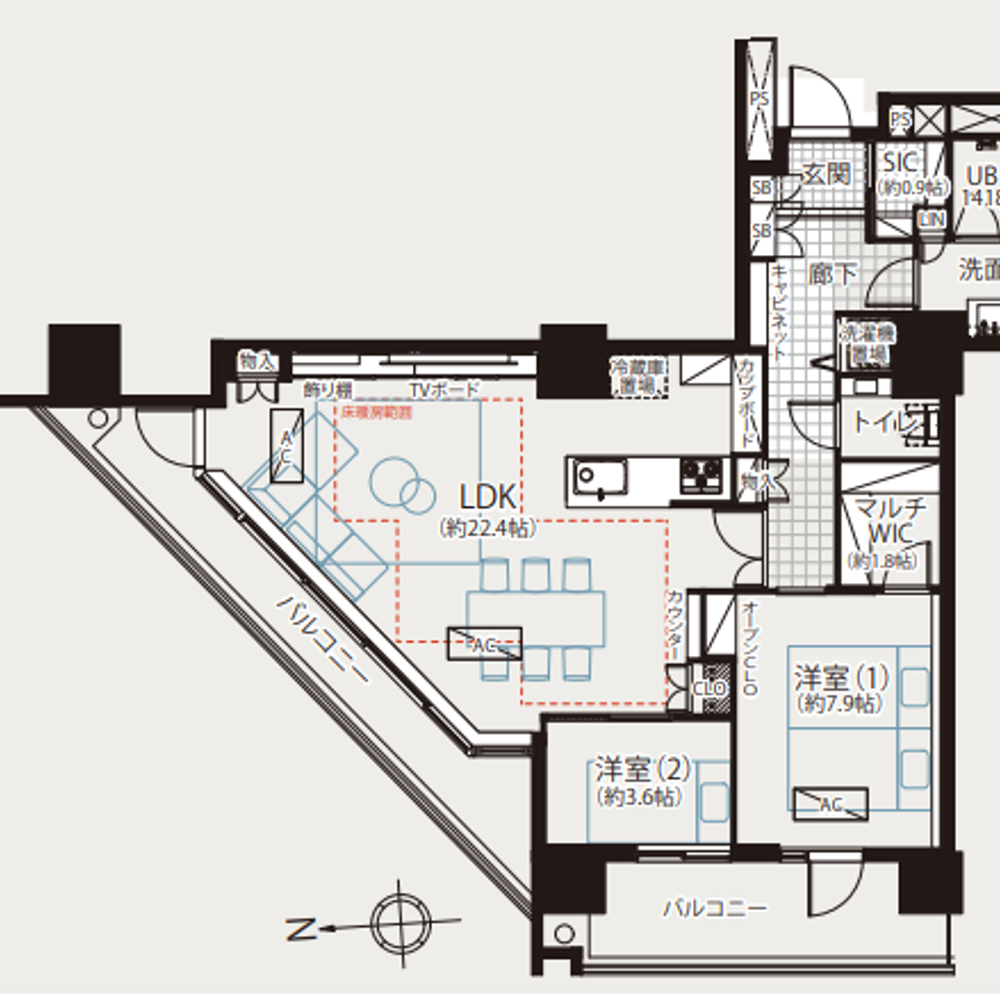 Kitchen, Hot Water, Lighting Fixtures, Flooring, Cooking Stove, Small Balcony, Aircon, Open Kitchen, Video Intercom, Toilet, Washlet, Separate Bath Toilet, Shower, Independent Wash Basin, Bathroom Dryer, Parking, Lounge