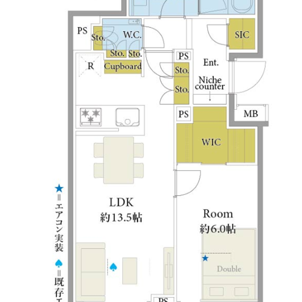 Kitchen, Hot Water, Lighting Fixtures, Flooring, Cooking Stove, Small Balcony, Aircon, Open Kitchen, Toilet, Washlet, Separate Bath Toilet, Shower, Independent Wash Basin, Bathroom Dryer