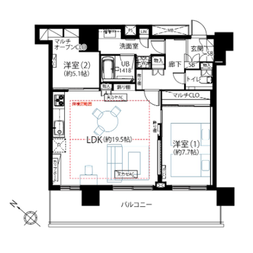 ・77.56m² / 2LDK layout on a high floor