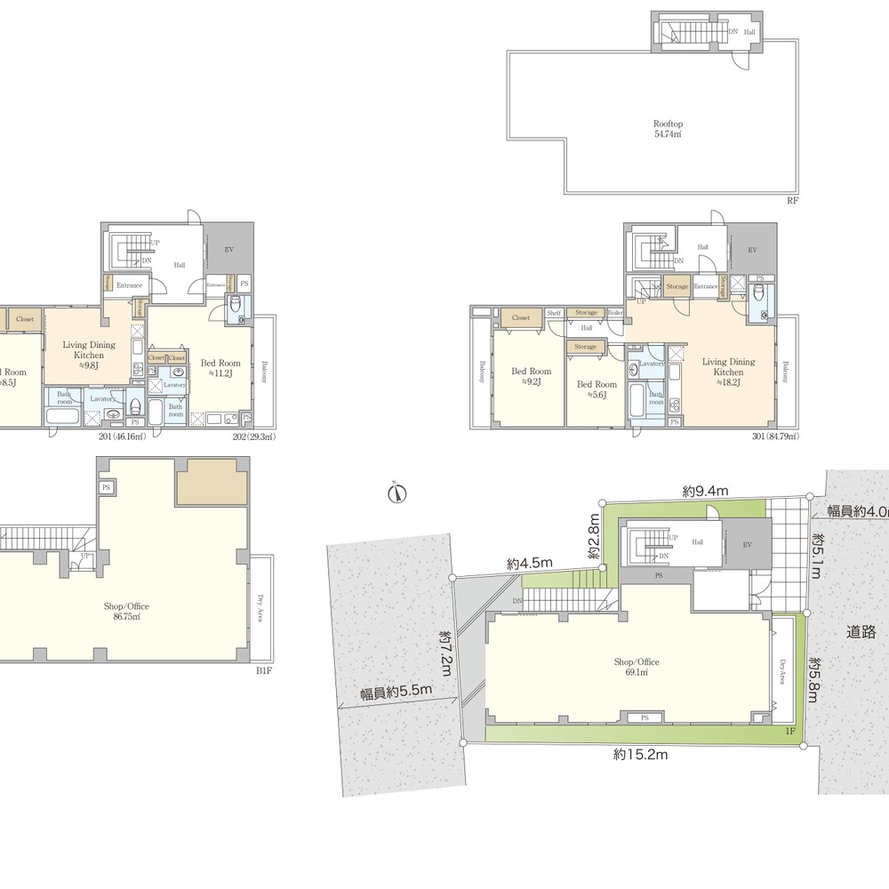 ・Second floor consists of two residential units numbered 201 and 202