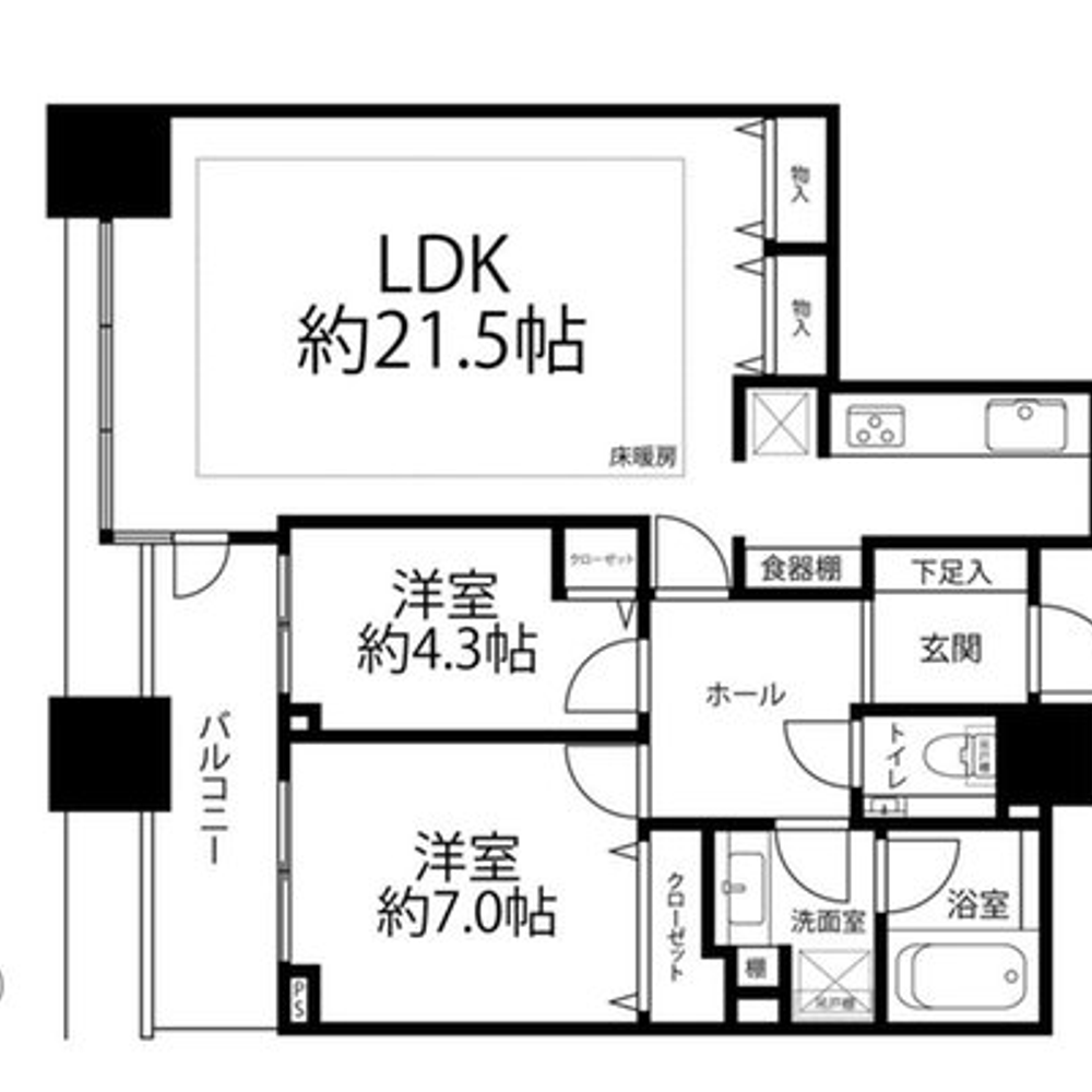 This 2LDK unit on the 18th floor features excellent natural light, ventilation, and an impressive city view. The spacious 21.5 tatami LDK benefits from dual aspect windows, offering a bright and open living area. The full renovation includes new flooring and wall finishes throughout, new doors and shoe storage, and completely updated facilities including kitchen, unit bath, vanity, toilet, water heater, and floor heating. Renovation plans are subject to change.