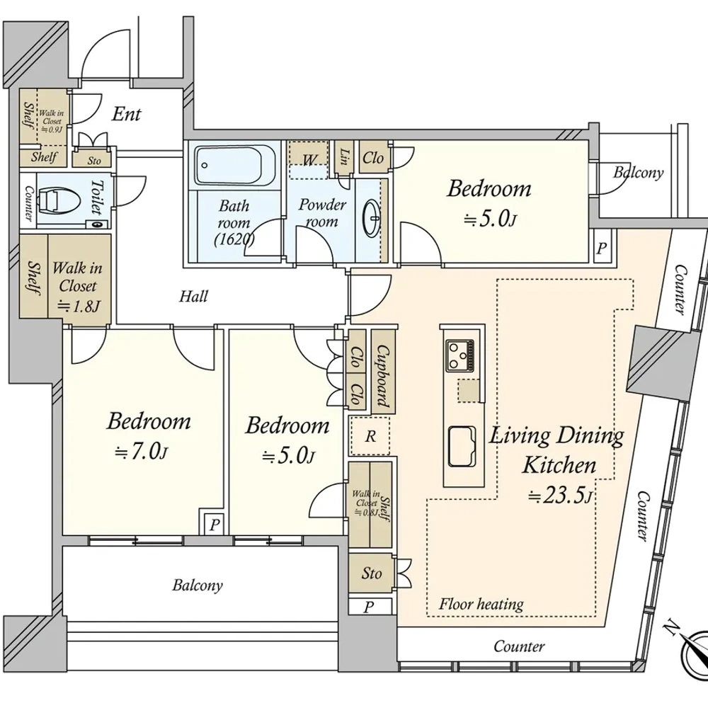 •Two walk-in closets (approx. 1.8㎡ and 0.8㎡), a shoe closet (approx. 0.9㎡), and generous storage throughout