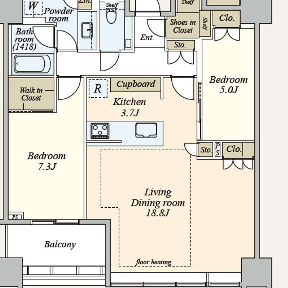 •Built-in air conditioning and floor heating in the living room