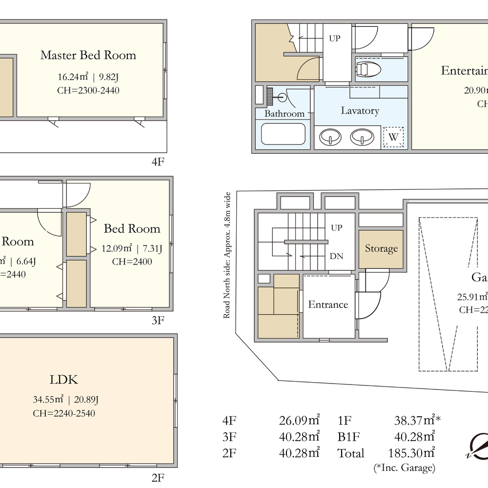 - Reinforced concrete detached residence with 4 floors above ground + 1 basement level