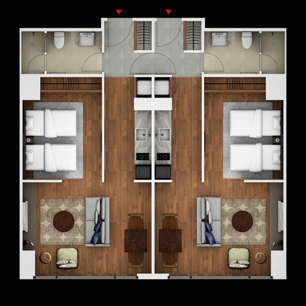 Combinatioin unit of 2 of 1bedroom, Just right for two families.