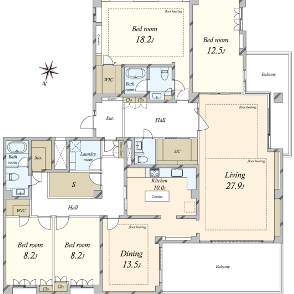 The impressive 51-tatami-mat LDK (living, dining, kitchen) creates a bright and open atmosphere—perfect for entertaining or relaxing in style. The residence includes two well-appointed bathrooms and three toilets, ensuring convenience and privacy for residents and guests alike.