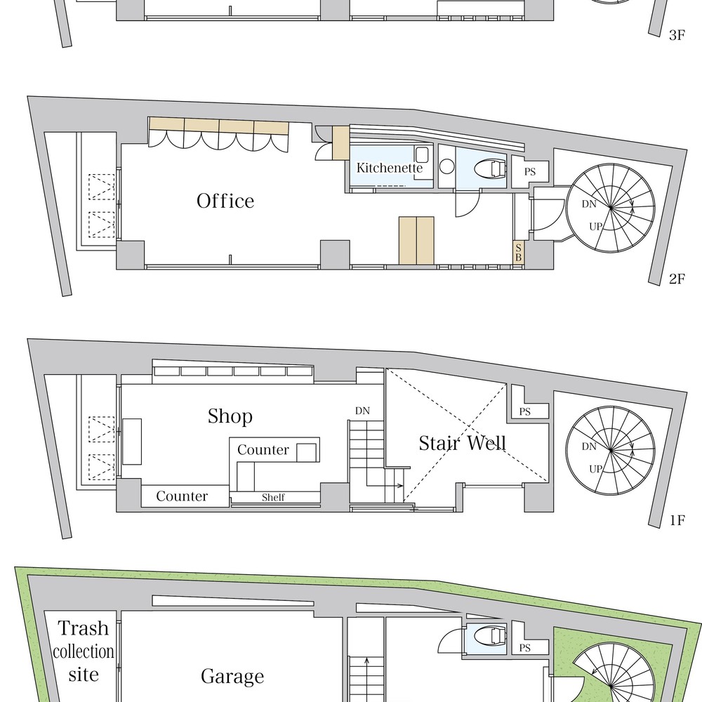 ・Mixed-Use Building: The first and second floors are dedicated to retail spaces, while the third and fourth floors serve as office spaces, providing a versatile setup for tenants.
